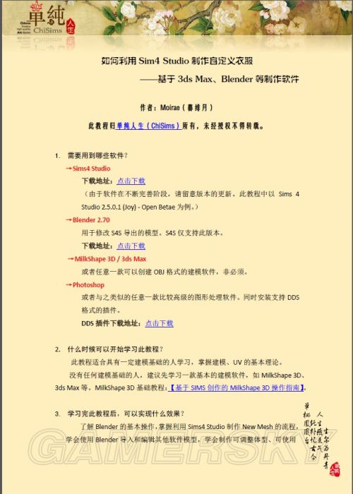 今天小编给大家带来的是一位玩家分享的《模拟人生4》自定义衣服图文教程,让小编教你如何利用Sim4 Studio制作自定义衣服——基于3ds Max、Blender等制作软件,快跟小编一起来看看吧!