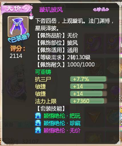 加28敏捷,7360的法力,不仅速度提升,法力值更是让人流口水, 加上璇玑套装本身的加成,魔族缺蓝这一个历史遗留问题可算解决了!