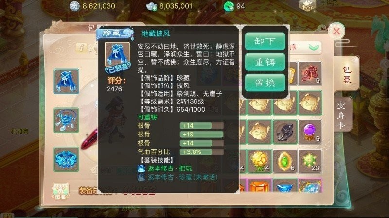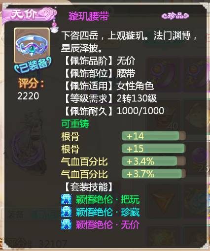 气血百分比增加7.1%!三阶仙器项链增加气血百分比11.3%,一个腰带就能达到7.1%,实在让人动容啊!在此基础上增加根骨29,完全不想跟这种血系单位打架了好吗!
