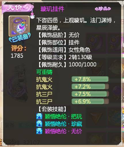 下面为大家带来一个无价抗性挂件,抗鬼火三尸,总数值高达29.4!相当于多了6点帮派修炼点!等于30多万帮贡!