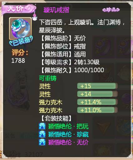 克木22.4的戒指!堪比一把二阶仙器的炼化了!你要明白!戒指是两个,两个克木戒指就是44的克木!强克上百轻轻松松,一个技能过去,对面哭天喊地。作为大炮的成就感就在于此!
