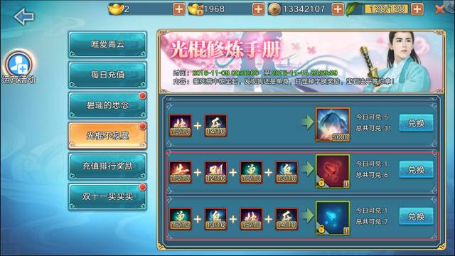最近开放了两大礼包:碧瑶的思念,能快速购买大量的碧瑶碎片,是快速觉醒碧瑶的利器哦。其次还有双十一买买买活动,让你的材料宝石瞬间爆棚。有元宝的玩家千万不要错过啦。