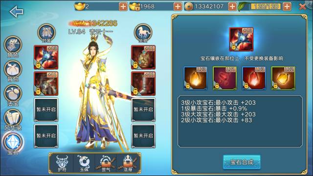 宝石需要多合成,三个低等级宝石合成一个高等级宝石,虽然属性上三个低等级宝石叠加属性高于一个高等级的宝石,但是宝石系统中很少有重复位置的宝石,所以不需要低等级的宝石垫底,不过还是建议大家在填满所有宝石位置之后再升级。