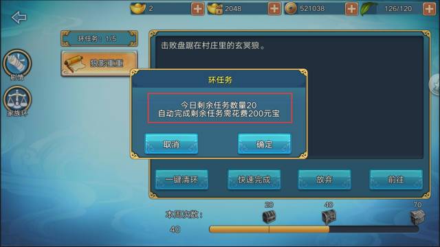 肆快速完成任务环任务会需要花费大量的时间,如何才能够快速完成呢?1、元宝直接购买:一个任务花费10元宝,秒掉一天的任务就需要花费200元宝。