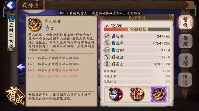 ✔第一,草人将继承丑时之女的伤害御魂效果。