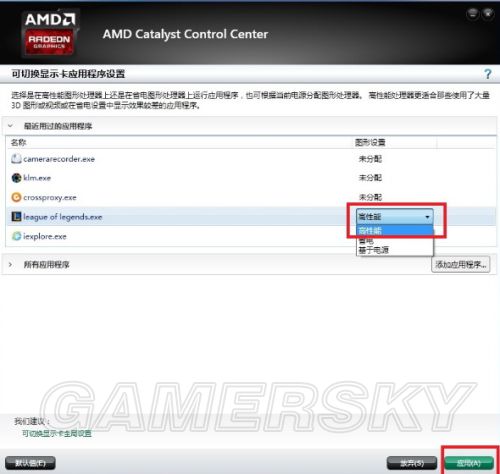 以下图的LOL为例,假如你在程序列表里面直接发现了穹之扉的程序,那么直接在【图形设置】的下拉列表处,选择【高性能】即可。