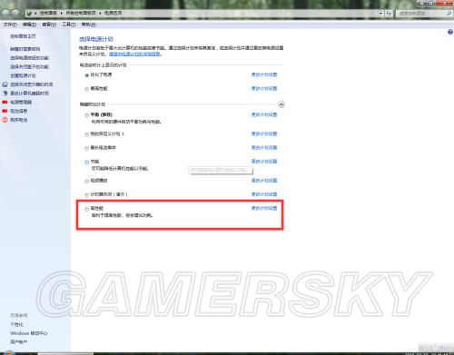 打开【电源选项】以后,你会发现一大堆电源计划。不用管他们,我们为打游戏而来的,直接选择【高性能】模式即可。