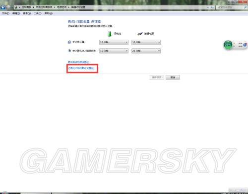 点击【高性能】计划后的【更改计划设置】,选择【还原计划默认设置】