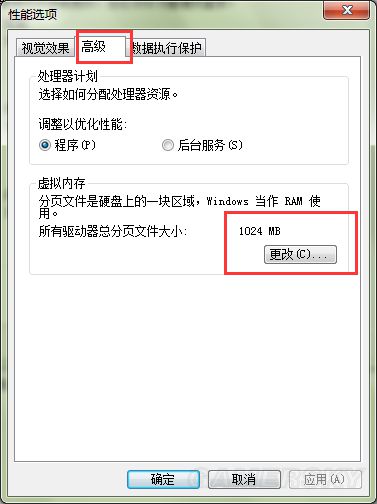 在弹出的【性能选项】窗口中,点击【更改】按钮