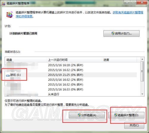 在弹出来的【磁盘碎片整理程序】中,选择好你安装游戏的分区。