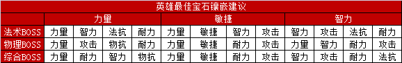 面对不一样的属性的BOSS和玩家,英雄并不是佩戴收益最大的宝石就是最好的,要是情况而定。