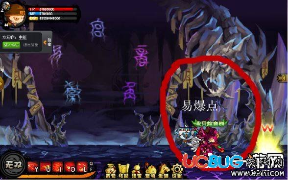震雷袈裟制作书的获得需要打败蝙蝠窟BOSS才能掉落,所以只要找到蝙蝠窟BOSS的易爆点就好了,在下图所示的红线位置中,就是它的易爆点。