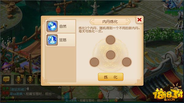 内丹炼化是用三个内丹来获得一个内丹。这里你需要注意的是,系统没有要求你一定要三个同种内丹进行炼化,比如你可以用一个自然一个坚甲一个慧心来进行炼 化。这样有什么好处呢?就是炼化出来的成品,不会是这三者之一,你用了三种不同的低价内丹来进行炼化,你就能有更大可能性获得高价内丹。