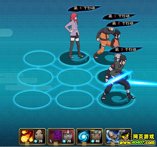 因为此阵容的摆法鸣人的分身会如下图,大家可以看到分身被“保护”了起来,下面我会说明原因