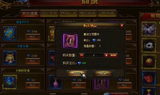 2、游戏商城内使用钻石168钻和绑定336钻石购买魔剑士身份卡,使用后便可解锁魔剑士职业。