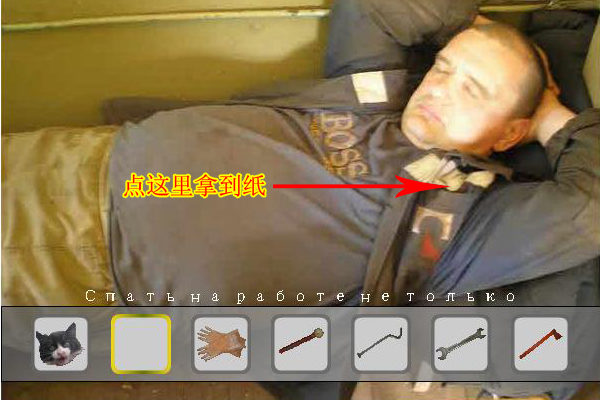 11、点睡觉的人,在他左边胸前的口袋拿到一张纸。