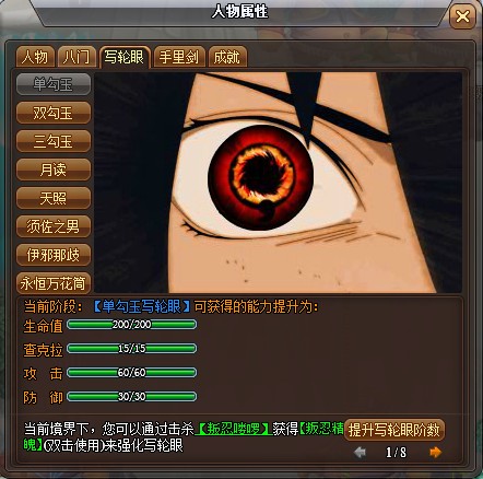 这个过程就是大家说的写轮眼开眼,使用写轮眼灵符可以升阶,但是只有一定的几率升阶才能成功。