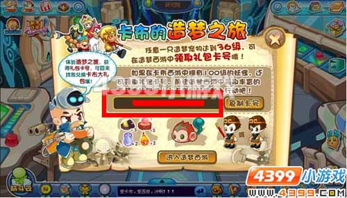 小飞并不是能从造梦世界中获取的,4399游戏中的卡布西游才是获取之道。要求在卡布西游中拥有一只100级的妖怪,这时就能在卡布西游中领取一个礼品码,进入造梦世界兑换稀有宠物小飞。
