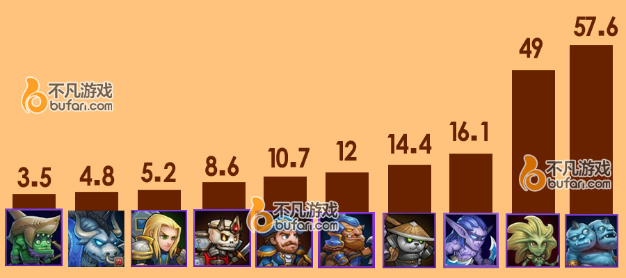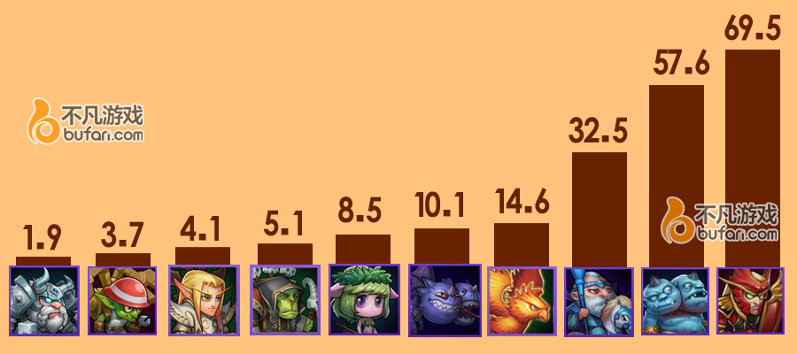 蓝胖小娜迦双雄地位暂时无人能撼动,敌法,熊猫上镜率已经下降到出场率仅为15%。白牛作为土豪玩具也有自己的一席之地,碍于入手方式困难所以上场率总体不高。如果全民都有一只的话那么出场率会变得难以想象。土豪们都称觉醒白牛配合法师队,效果杠杠的。而本月新推出的土豪玩具灰烬之灵……下周分析时我们见分晓。