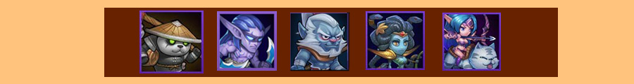 蓝胖,小娜迦,猴子,沉默,小黑。上场率15.32%