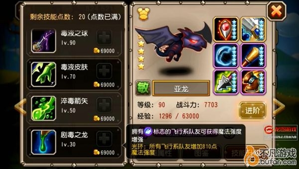 这是个加给所有飞行系队友的光环技能,满级能为队友增加810点法强,这意味着预言之池北境巨龙要是有觉醒亚龙在的话,伤害会飙升,难度6也不会再像之前那样困难。