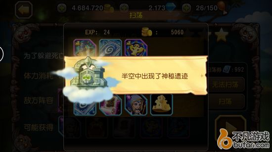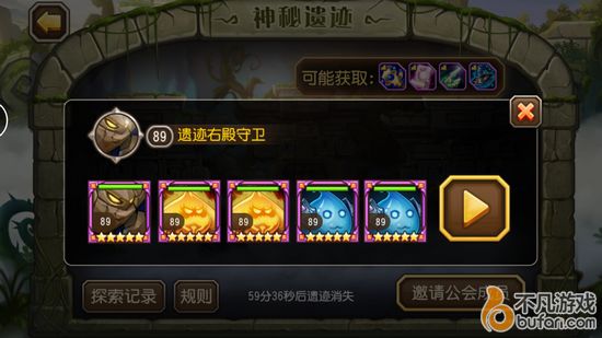 出现的神秘遗迹共有三处可以进攻,自己可攻打一处