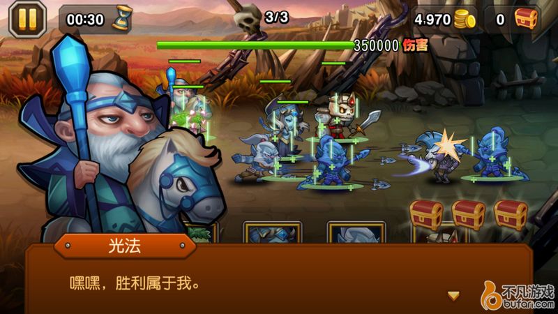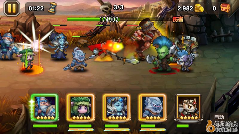 在尝试很多组合之后,笔者用的阵容为:骷髅王+猴子+巫妖+小鹿+光法