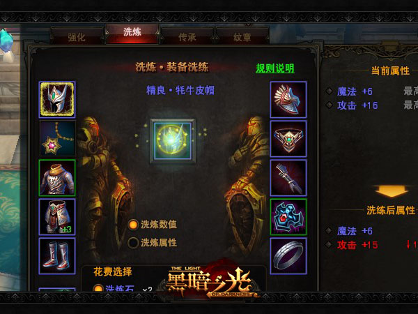装备系统,另有三大功能可以升级优化装备。洗炼功能,可对装备进行基本属性和数值的洗练,提升装备基本属性。为保留装备的星级,可将一件装备上的原有强化星级传承至另一件装备,不必担心因装备更换而造成星级浪费的问题。