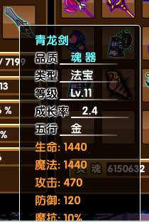 成长2.4的青龙剑在11级时:生命1440、魔法1440、攻击力470、防御120、魔抗+10%