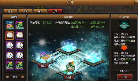 首先玩家点击进阶页签可进入宠物进阶界面,选择需要进阶的宠物进行进阶: