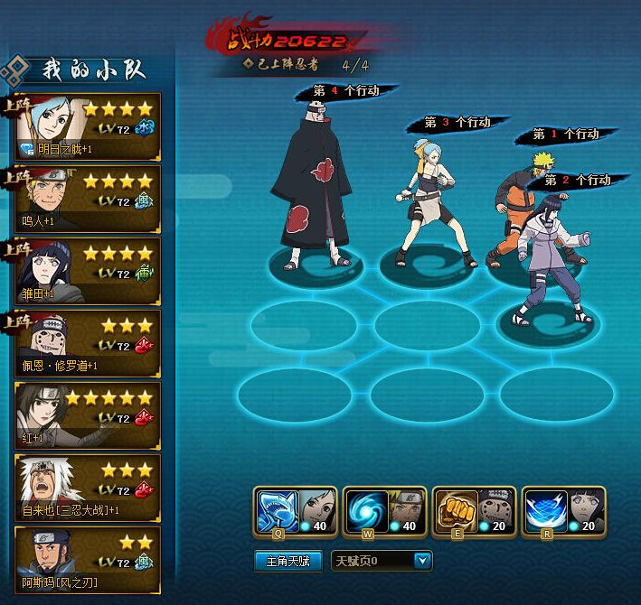 第四回合:水主大脚蛋,中间最下面的那个怪,雏田开启奥义,操作完毕后,就只剩下最后那个双免怪和中间最下面那个怪了,这个时间,雏田,弹弹弹,最后被最后面那个怪的奥义打死,没关系的,这个后面,就鸣人和修罗道的奥义,各自打一个怪就过了